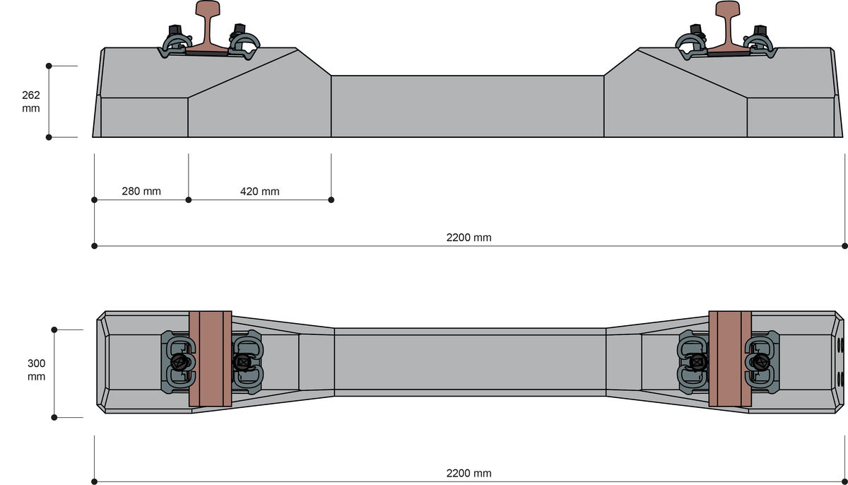 Die Schwellen Typ LIS und TBS sind gewöhnliche Schwellen für Tram oder Industriebahnen mit Achslasten bis zu 18 Tonnen. Sie werden als Schmalspurschwelle mit 1.8 und Normalspur mit 2.2 m Länge hergestellt. Neben einer Anpassung an Schienenprofil, Schienenneigung und Schienenbefestigung können die Schwellen mit erhöhten Schienenauflagern gefertigt werden, um z.B. bei Grüngleisen mehr Volumen für das Grassubstrat zur Verfügung zu stellen.