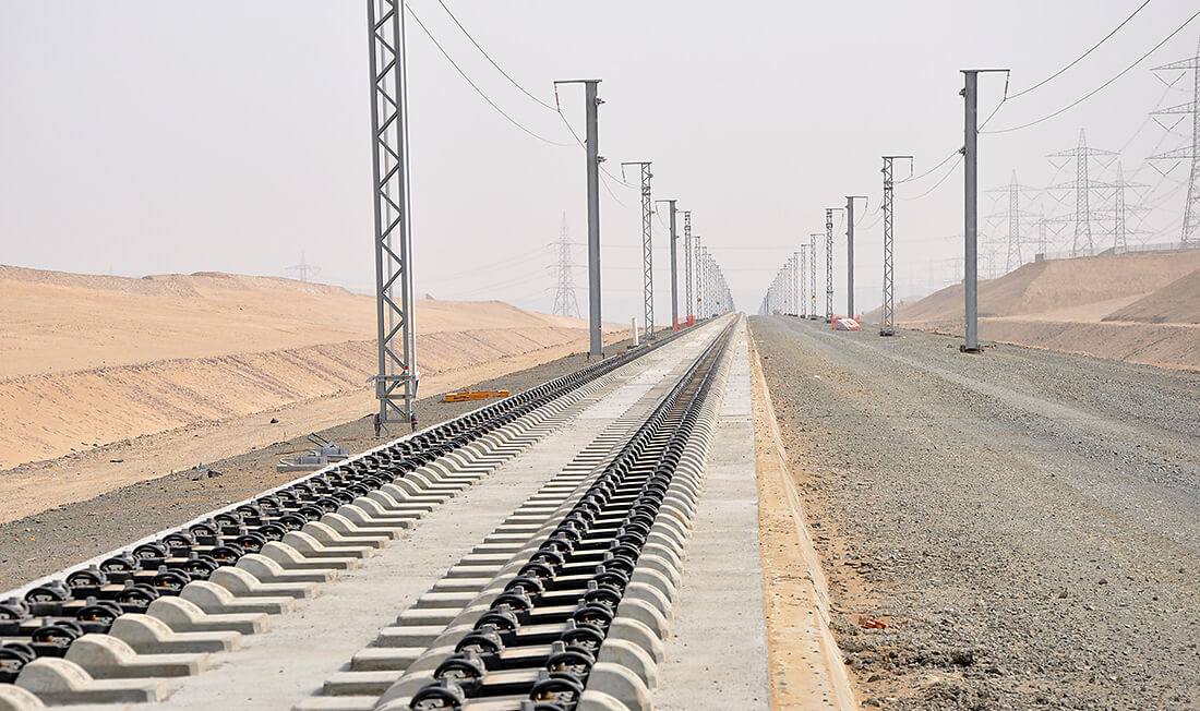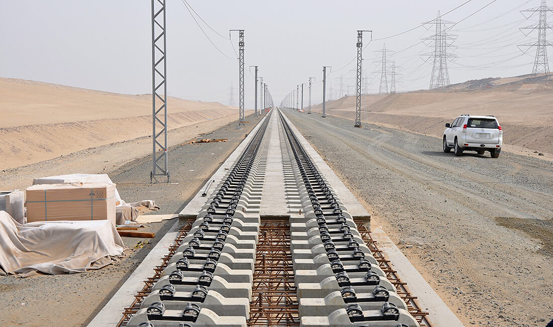 2011 begann der Bau der ersten Hochgeschwindigkeitsstrecke in einem Wüstengebiet. Sie verbindet Mekka und Medina, die beiden wichtigsten heiligen Städte des Islams miteinander. Millionen von Pilgern und Touristen wird es dadurch möglich, die 444 Kilometer lange Distanz in nunmehr nur ca. zwei Stunden Fahrzeit zu bewältigen. Technisch herausfordernd: die Strecke ist zu einem Viertel von Versandung bedroht. Der geringe Wartungsaufwand und die vielfache Erprobung des Systems RHEDA 2000® waren daher ausschlaggebend für die Auswahl des Systems. Die Strecke wurde im Januar 2018 eröffnet.