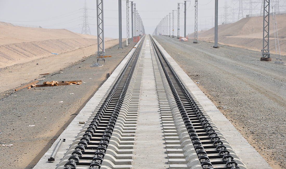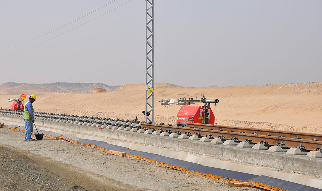 - Der Lieferumfang von RAILONE umfasste ca. 210.000 Schwellen vom Typ RHEDA 2000® und ca. 500.000 Schotterschwellen, hergestellt im Betonschwellenwerk in Ha‘il, Saudi Arabien