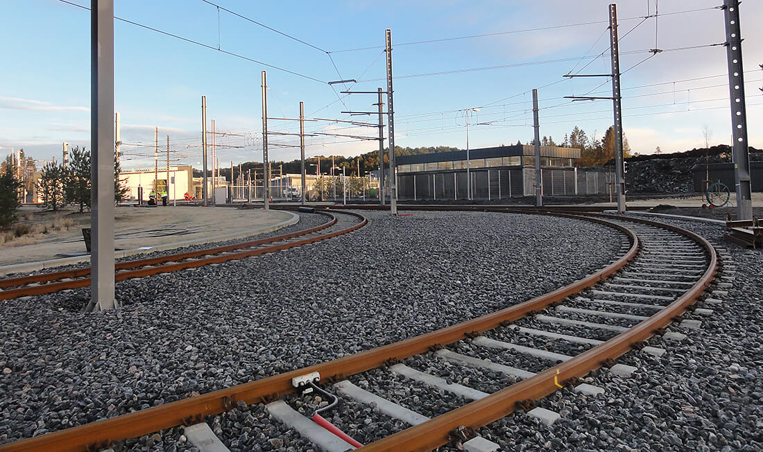 - Für die Abschnitte in den Straßenbahnstationen und dem Depot kam RHEDA CITY zum Einsatz, da dieses Feste-Fahrbahn-System für alle Eindeckungsvarianten (Rasen, Pflaster, Beton) geeignet ist